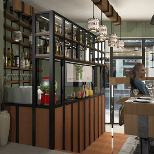 The proposals initially had a more natural style with the use of wood. Later, in agreement with the client, the industrial style was desired.